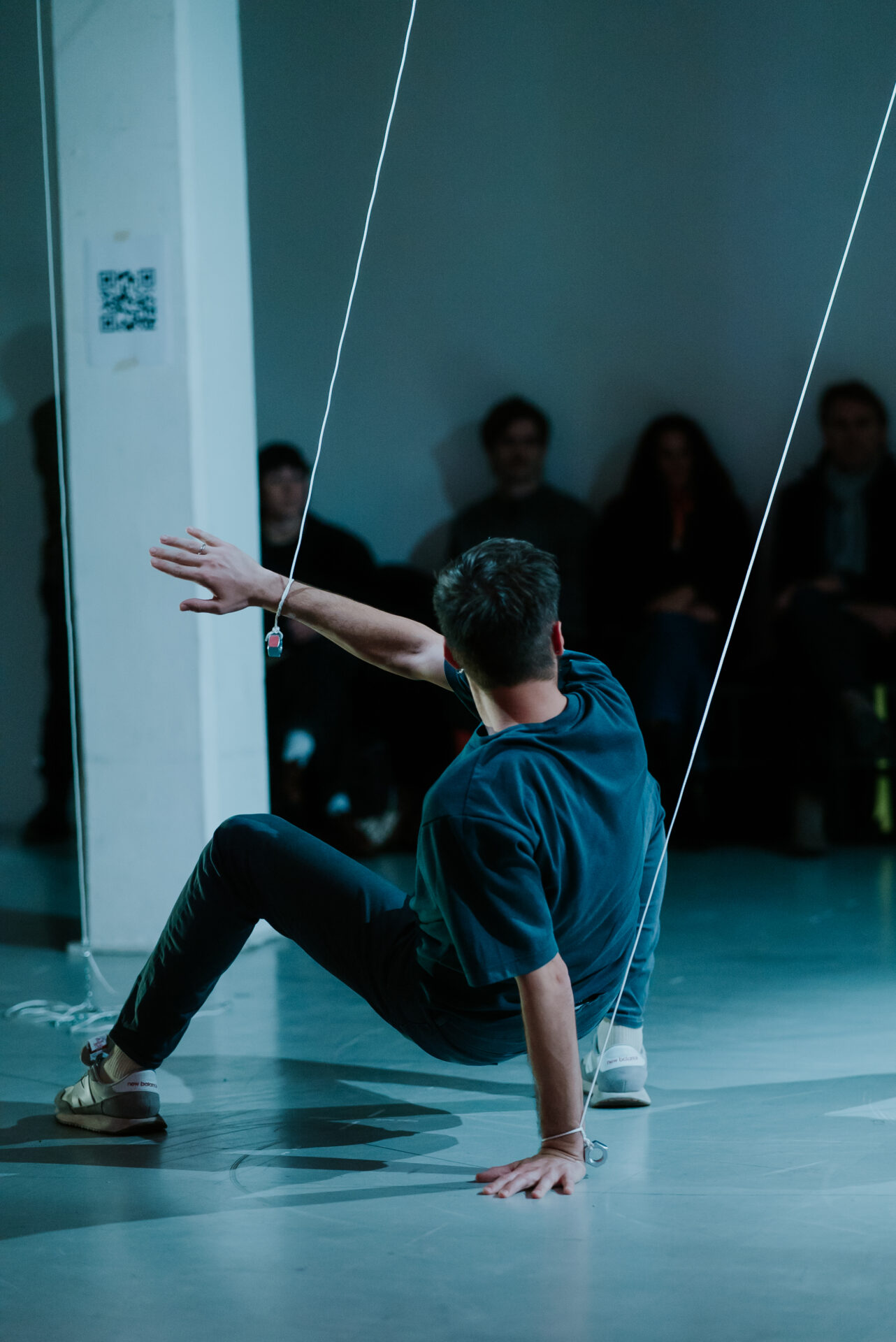 Choreographer Amos Ben-Tal and his collective OFFprojects were House Guests at The Grey Space. Under the title OFFsessions, they opened up their creative process to the public. During OFFsessions #3, visitors were invited to explore fragments of The Bone Algorithm, an interdisciplinary project that investigates the relationship between technology and human movement. The work combines dance, kinetic installations, and music, and questions how technology influences our ways of being.